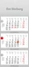 Kalender mit großem Kopfbild und drei Werbeleisten. Wahlweise mit Marki oder fertig um den Kalender montierten Datumsschieber lieferbar. Der Marki ist ein Tagesmarkierer, der aus einer roten, transparenten Folie besteht und auf dem Kalendarium haftet.